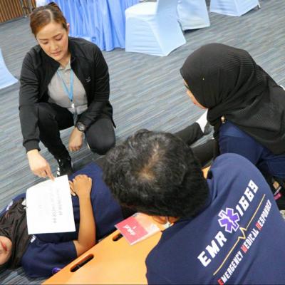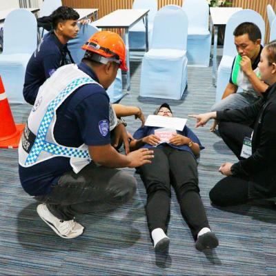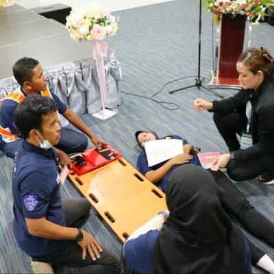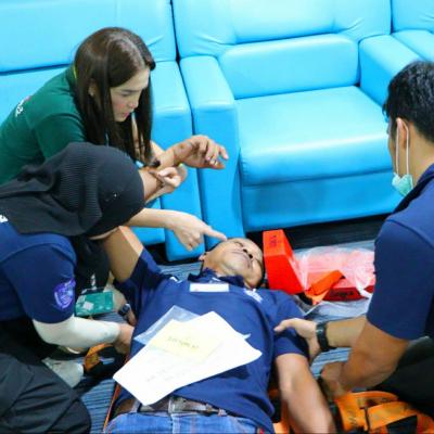 โดยหลักสูตรกิจกรรมวันที่ 16 กุมภาพันธ์ 2567 ( ระหว่างเวลา 09.00 น. – 18.00 น. ) ช่วงเช้าเป็นการสอบในภาคทฤษฎี และฝึกปฏิบัติในการเข้าช่วยเหลือผู้บาดเจ็บในสถานการณ์เมื่อเกิดอุบัติเหตุหมู่ โดยมีทีมพยาบาลวิชาชีพจากโรงพยาบาลหาดใหญ่ เป็นวิทยากรให้ความรู้