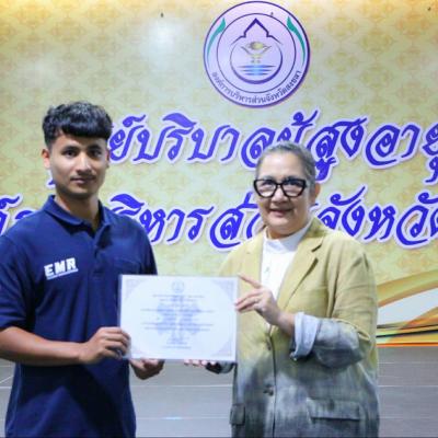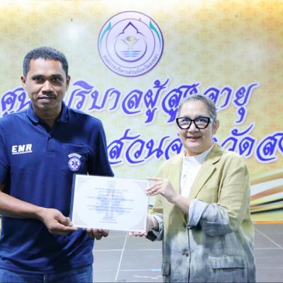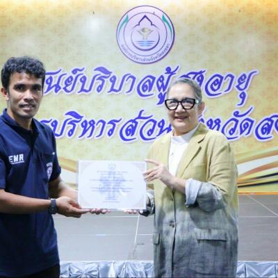 วันที่ 16 กุมภาพันธ์ 2567 เวลา 16.00 น. นางสาวปรินดา ปาลาเร่ รองนายกองค์การบริหารส่วนจังหวัดสงขลา เป็นประธาน “ กล่าวปิดกิจกรรมการฝึกอบรมหลักสูตรการปฐมพยาบาลและช่วยปฏิบัติการแพทย์ขั้นพื้นฐาน (EMR) รุ่นที่ 1 ” ที่ได้จัดขึ้นระหว่างวันที่ 12 – 16 กุมภาพันธ์ 2567 พร้อมมอบประกาศนียบัตรแก่ผู้ผ่านการอบรม จำนวน 40 คน ณ ห้องประชุมติณสูลานนท์ ศูนย์บริบาลผู้สูงอายุ อบจ.สงขลา