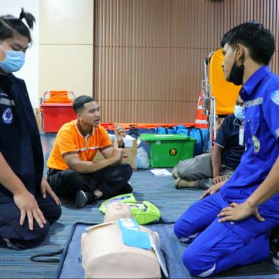 หลักสูตรกิจกรรมวันที่ 21 กุมภาพันธ์ 2567 ( ระหว่างเวลา 09.00 น. – 18.00 น. ) ภาคทฤษฎีเป็นการบรรยายเรื่องการช่วยฟื้นคืนชีพพื้นฐาน และ AED การดูแลผู้ป่วยฉุกเฉินเบื้องต้น (ภาวะฉุกเฉินทางการแพทย์) ช่วงบ่ายมีการฝึกปฏิบัติการประเมินสถานการณ์ผู้ป่วยขั้นต้น / การประเมินสภาพผู้ป่วยฉุกเฉิน และฝึกปฏิบัติการช่วยฟื้นคืนชีพขั้นพื้นฐาน และ AED วัตถุประสงค์การจัดกิจกรรมเพื่อให้ผู้เข้าอบรมมีความรู้ มีทักษะที่ถูกต้องในการปฏิบัติงานการแพทย์ฉุกเฉิน โดยมีทีมพยาบาลวิชาชีพจากโรงพยาบาลหาดใหญ่ เป็นวิทยากรให้ความรู้