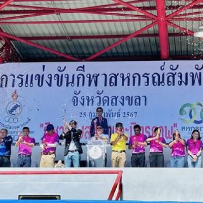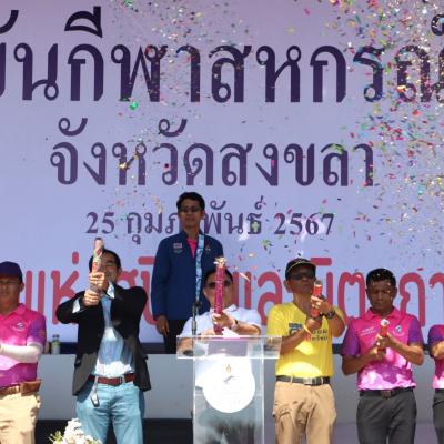 นายไพเจน มากสุวรรณ์ นายกองค์การบริหารส่วนจังหวัดสงขลา เป็นประธาน ในพิธีเปิดการแข่งขันกีฬาสหกรณ์สัมพันธ์ เนื่องในวันสหกรณ์แห่งชาติ ประจําปี 2567
