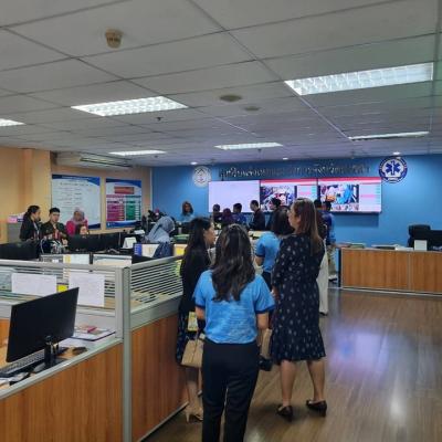 พร้อมทั้ง การลงพื้นที่เยี่ยมชมศูนย์รับแจ้งเหตุและสั่งการการแพทย์ฉุกเฉินสงขลา "เรียนรู้ระบบการรับเรื่อง และการจ่ายงาน"