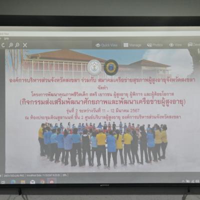 อบจ.สงขลา เดินหน้าพัฒนาศักยภาพผู้สูงอายุ ผ่านโครงการพัฒนาคุณภาพชีวิตเด็ก สตรี เยาวชน ผู้สูงอายุ ผู้พิการ และผู้ด้อยโอกาส (กิจกรรมส่งเสริมพัฒนาศักยภาพและพัฒนาเครือข่ายผู้สูงอายุ) รุ่นที่ 2
