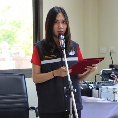 นางสาวสุพาทินี เพ็งเจริญ นักสังคมสงเคราะห์ชำนาญการ กองสวัสดิการสังคม อบจ.สงขลา // กล่าวรายงาน