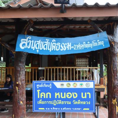 การพัฒนาคุณภาพชีวิตตามหลักทฤษฎีใหม่ ประยุกต์สู่ โคก หนอง นา จังหวัดจึงได้เชิญเข้าร่วมโครงการบันทึกข้อตกลงความร่วมมือในการพัฒนาศูนย์เรียนรู้ โคก หนอง นา ณ ศูนย์เรียนรู้ โคก หนอง นา วัดดีหลวง ตำบลดีหลวง อำเภอสทิงพระ จังหวัดสงขลา โดยกิจกรรมวันนี้ประกอบด้วย การบรรยาย โคก หนอง นา เพื่อการปฏิบัติธรรม การเยี่ยมชมฐานเรียนรู้แปลง โคก หนอง นา และร่วมกิจกรรม ธนาคารเมล็ดพันธุ์