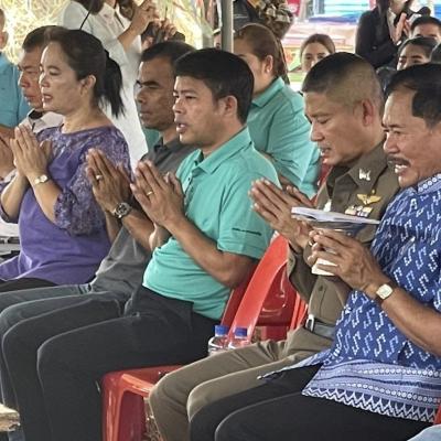 ฝ่ายสงฆ์ // นายประสิทธิ์ แก้วมรกต นายเทศมนตรีตำบลทุ่งลาน //พ.ต.อ.ชาตรี รัตนคช ผู้กำกับการสถานีตำราจภูธรคลองหอยโข่ง // นายวราพงษ์ แก้วจุลกาญ กำนันตำบลทุ่งลาน เเละประชาชนในพื้นที่ เข้าร่วมในกิจกรรมครั้งนี้