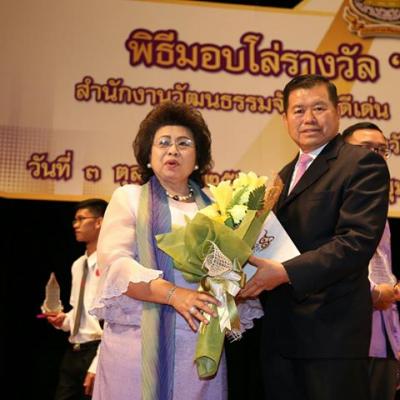 นายก อบจ.สงขลา เข้ารับโล่รางวัลเชิดชูเกียรติ "วัฒนคุณาธร" จากนายวีระ โรจน์พจนรัตน์ รัฐมนตรีว่าการกระทรวงวัฒนธรรม