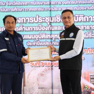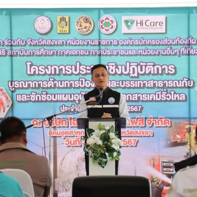 นายสุรสิทธิ์ ศรีอินทร์ รองนายกองค์การบริหารส่วนจังหวัดสงขลา เป็นประธานเปิดโครงการประชุมเชิงปฏิบัติการบูรณาการด้านการป้องกันและบรรเทาสาธารณภัยและซักซ้อมแผนอุบัติเหตุหมู่จากสารเคมีรั่วไหล ประจำปีงบประมาณ พ.ศ.2567 โดยมี นางสาวสุดปรารถนา ศรีทองคำ หัวหน้าฝ่ายบริหารงานทั่วไป กล่าวรายงาน พร้อมด้วย บุคลากรและเจ้าหน้าที่งานป้องกันและบรรเทาสาธารณภัยจากหน่วยงานภาคีเครือข่ายเข้าร่วม โดยกิจกรรมมีการเตรียมความพร้อมอุปกรณ์ เครื่องมือเครื่องใช้เพื่อเตรียมซักซ้อมแผนอุบัติเหตุหมู่จากสารเคมีรั่วไหล
