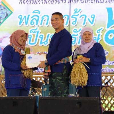อบจ.สงขลา เข้าร่วมกิจกรรมเกี่ยวข้าวสืบสานประเพณีพหุวัฒนธรรม ท่องเที่ยววิถีพอเพียง นาทวีโมเดล “พลิกนาร้าง เป็นนารักษ์ ปีที่ 6 ”