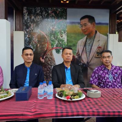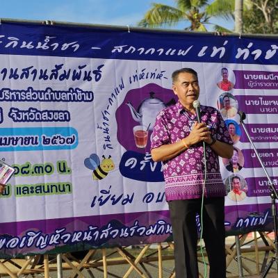 นายสุรสิทธิ์ ศรีอินทร์ รองนายกองค์การบริหารส่วนจังหวัดสงขลา พร้อมด้วย นายธัชธาวินท์ สะรุโณ ผู้เชี่ยวชาญพิเศษด้านการเกษตร องค์การบริหารส่วนจังหวัดสงขลา และหัวหน้าส่วนราชการ องค์กรภาคีเครือข่าย ร่วมเวทีสนทนา ในกิจกรรมเยี่ยมหน่วยงานสานสัมพันธ์ "สภากาแฟ เท่ ท่าข้าม" ครั้งที่ 3