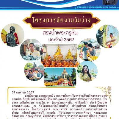 โครงการงานวันว่าง (สรงน้ำพระครูหิ้น ฐานิสสโร) ประจำปีงบประมาณพ.ศ.2567 ณ วัดไทรทอง (วัดบ้านพร้าว) ตำบลทำนบ อำเภอสิงหนคร จังหวัดสงขลา