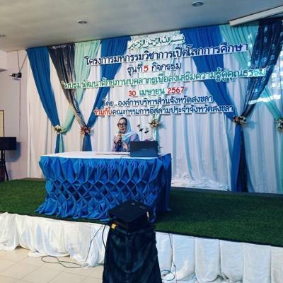 อบจ.สงขลา จัดโครงการมหกรรมวิชาการเปิดโลกการศึกษา รุ่นที่ 5 (กิจกรรมอบรมพัฒนาศักยภาพบุคลากรเพื่อส่งเสริมความรู้คู่คุณธรรม) ประจำปีงบประมาณ พ.ศ. 2567