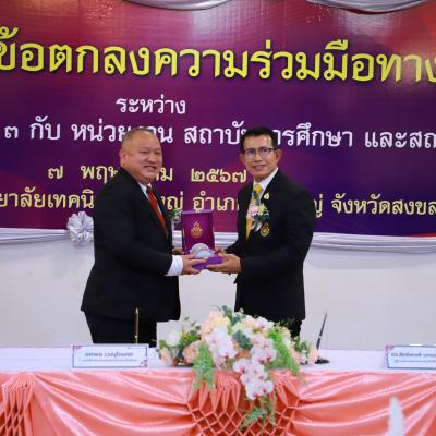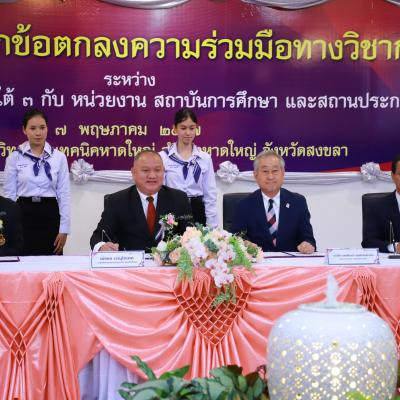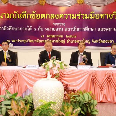 อบจ.สงขลา ร่วมลงนามบันทึกข้อตกลงความร่วมมือทางวิชาการระหว่างสถาบันอาชีวศึกษาภาคใต้ 3 กับหน่วยงาน สถาบันการศึกษา และสถานประกอบการ