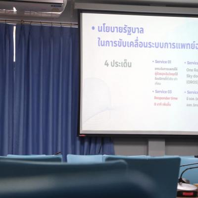 โอกาสนี้ นางสาวนาถลดา จิตสุวรรณ หัวหน้ากลุ่มงานบริการการแพทย์ฉุกเฉิน องค์การบริหารส่วนจังหวัดสงขลา ได้นำเสนอและตอบข้อซักถามการดำเนินงานศูนย์รับแจ้งเหตุและสั่งการการแพทย์ฉุกเฉิน องค์การบริหารส่วนจังหวัดสงขลา ภายใต้วิสัยทัศน์ “องค์กรต้นแบบด้านการบริหารและการพัฒนางานการแพทย์ฉุกเฉิน ด้วยเทคโนโลยีที่ทันสมัยภายในปี 2568” อีกด้วย