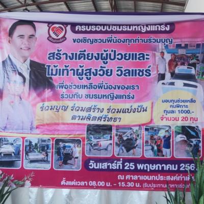 เช่นเดียวกันในปีนี้ทางชมรมมีโครงการช่วยเหลือผู้ป่วยพึ่งพิง โดยจะจัดซื้อเตียงผู้ป่วย วีลแชร์ ไม้เท้า 3 ขา มอบให้ผู้ป่วยที่ขาดแคลนพร้อมมอบทุนให้กับคนพิการ