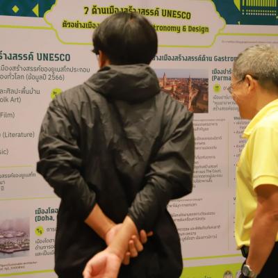 โดยภายในงานจัดให้มีเวทีนำเสนอผลการศึกษาเบื้องต้น โดยคณะที่ปรึกษา กรอบแนวคิดเมืองสร้างสรรค์ของ UNESCO กับการขับเคลื่อนจังหวัดสงขลาฯ โดย Dr.Alexandra Denes ผู้เชี่ยวชาญด้านมรดกทางวัฒนธรรม กรณีศึกษาเมืองสร้างสรรค์ของ UNESCO 7 สาขา โดยคุณอรกัญญา อินทะวงค์ ผู้เชี่ยวชาญด้านการจัดการวัฒนธรรม , การสรุปผลการศึกษาศักยภาพแหล่งทรัพยากรและความพร้อมของการเป็นเมืองสร้างสรรค์ UNESCO ของจังหวัดสงขลา โดยอาจารย์อจิรภาส์ ประดิษฐ์ ผู้เชี่ยวชาญด้านการออกแบบเมือง และกิจกรรม Workshop "มองสงขลาด้วยสายตาเมืองสร้างสรรค์ UNESCO"