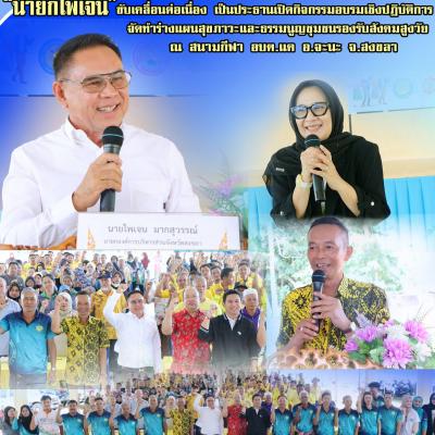 เวลา 13.00 น. นายไพเจน มากสุวรรณ์ นายกองค์การบริหารส่วนจังหวัดสงขลา เป็นประธานกล่าวเปิดกิจกรรม “อบรมการจัดทำร่างแผนสุขภาวะและธรรมนูญชุมชน” (กิจกรรมย่อยที่ 3) ภายใต้โครงการอบรมเพื่อสร้างเสริมสุขภาพอนามัยของประชาชนแบบบูรณาการ ปีงบประมาณ 2567 (กิจกรรมเครือข่าย อปท.รองรับสังคมสูงวัย) พร้อมด้วย นางสาวปรินดา ปาลาเร่ รองนายกองค์การบริหารส่วนจังหวัดสงขลา นายณัฐภัท ชุมทองเชิดบำรุง เลขานุการนายกองค์การบริหารส่วนจังหวัดสงขลา คณะผู้บริหาร และข้าราชการองค์การบริหารส่วนตำบลแค ร่วมเป็นเกียรติในพิธีเปิด โดยมี นายอาหมัด หนิเหม นายกองค์การบริหารส่วนตำบลแค ให้การกล่าวต้อนรับ และ นางสาวรุจิรา ไชยเจริญ นักวิชาการสาธารณสุข อบจ.สงขลา กล่าวรายงาน การจัดกิจกรรมดังกล่าวฯมีวัตถุประสงค์เพื่อพัฒนาและส่งเสริมองค์ความรู้ให้กับประชาชน จิตอาสา กลุ่มผู้ดูแลผู้สูงอายุในชุมชน ภาคีเครือข่ายสุขภาพ และเจ้าหน้าที่ที่เกี่ยวข้อง ให้มีความรู้ในการดูแลสุขภาพให้แก่ประชาชนทั่วไป กลุ่มเสี่ยง กลุ่มป่วย และผู้สูงอายุในชุมชน โดยสามารถนำความรู้ที่ได้ไปปฏิบัติได้อย่างถูกต้องมีประสิทธิภาพ และเพื่อให้เครือข่ายองค์กรปกครองส่วนท้องถิ่นนำข้อมูลการคัดกรองของประชาชนในชุมชนมาวิเคราะห์ในการจัดทำแผนสุขภาวะและธรรมนูญชุมชนได้อย่างมีประสิทธิภาพ โดยมี นายชาคริต โภชะเรือง ประธานมูลนิธิชุมชนสงขลาและทีม นางสาวกมลทิพย์ อินทะโณ เจ้าหน้าที่เขตสุขภาพเพื่อประชาชน เขต 12 และ นางสาวดิษยา วารีกูล นักกายภาพบำบัดโรงพยาบาลจะนะ เป็นวิทยากรให้ความรู้
