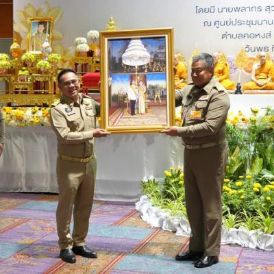 นายก อบจ.สงขลา รับมอบพระบรมฉายาลักษณ์พระบาทสมเด็จพระเจ้าอยู่หัว และสมเด็จพระนางเจ้าฯพระบรมราชินี จากองคมนตรี ในกิจกรรม “เทศนาธรรม 4 ภาค ทั่วไทย” ครั้งที่ 3 (หนใต้) เนื่องในโอกาสพระราชพิธีมหามงคลเฉลิมพระชนมพรรษา 6 รอบ