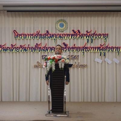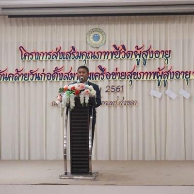 เมื่อวันที่ 17 ตุลาคม 2561 เวลา 09.30 น. นายสมหมาย ขวัญทองยิ้ม รองนายก อบจ.สงขลา ร่วมเป็นเกียรติและกล่าวพบปะผู้สูงอายุ ในงานสังสรรค์วันครบรอบก่อตั้งสมาคมเครือข่ายสุขภาพผู้สูงอายุจังหวัดสงขลา ณ โรงแรมกรีนเวิลด์ สงขลา โดยมีนายไพโรจน์ จริตงาม รองผู้ว่าราชการจังหวัดสงขลา เป็นประธานในพิธีเปิด ทั้งนี้สมาคมเครือข่ายสุขภาพผู้สูงอายุจังหวัดสงขลา ได้จัดงานสังสรรค์วันครบรอบก่อตั้งสมาคมเครือข่ายสุขภาพผู้สูงอายุจังหวัดสงขลา และจัดกิจกรรมนันทนาการผู้สูงอายุจังหวัดสงขลา ครั้งที่ 16 ประจำปี 2561 ขึ้น เพื่อให้ผู้สูงอายุทั้ง 16 อำเภอ ได้มีโอกาสพบปะสังสรรค์แลกเปลี่ยนเรียนรู้ เป็นการเสริมสร้างสุขภาพกาย สุขภาพจิต และกระชับความรัก ความสามัคคีให้ดียิ่งขึ้น
