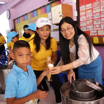 และอีกหนึ่งกิจกรรม คือกิจกรรมส่งความสุขสร้างรอยยิ้มด้วยไอศครีมให้น้องๆโรงเรียนสงขลาพัฒนาปัญญา โดยได้รับความร่วมมือจากบุคลากรองค์การบริหารส่วนจังหวัดสงขลา ในการจัดหาไอศครีมจำนวน 3 ถัง เป็นเงิน 6,000 บาท เพื่อจัดเลี้ยงน้องๆโรงเรียนสงขลาพัฒนาปัญญา โอกาสนี้ นายอับดลรอหมาน กาเหย็ม รองนายกองค์การบริหารส่วนจังหวัดสงขลา และหัวหน้าส่วนราชการ ได้ร่วมกันตักไอศครีมแจก สร้างความสุขและรอยยิ้มให้กับน้องๆโรงเรียนสงขลาพัฒนาปัญญา