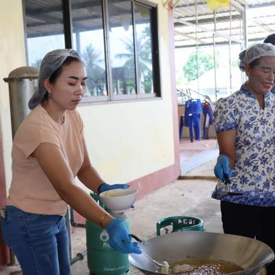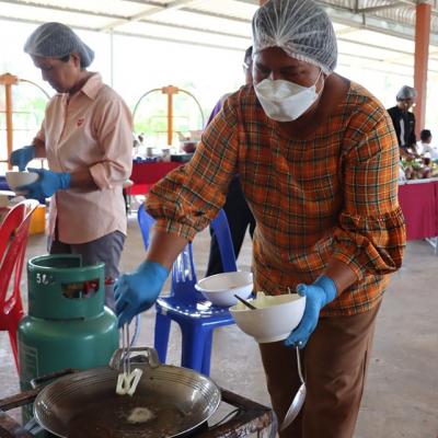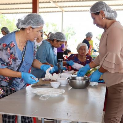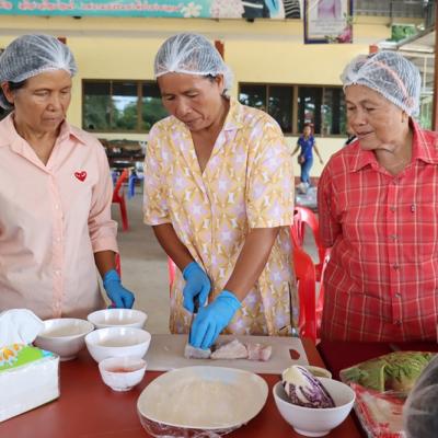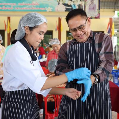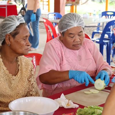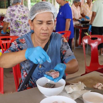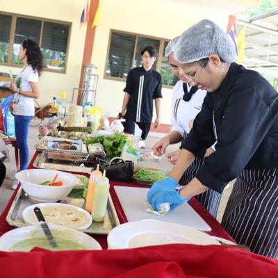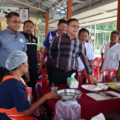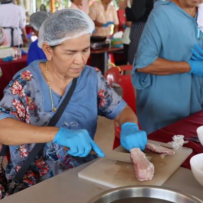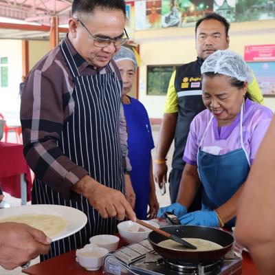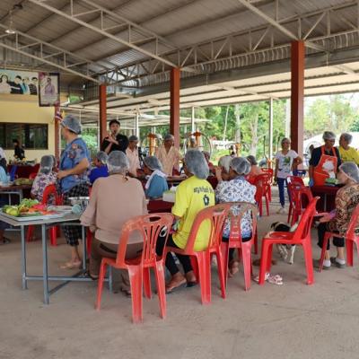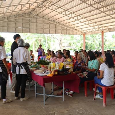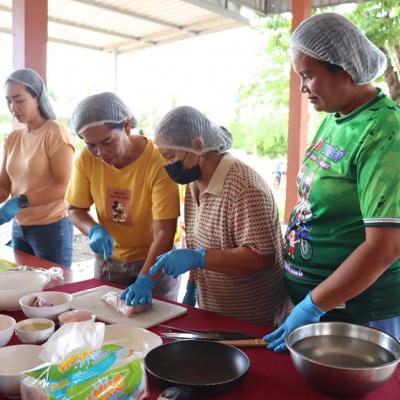 โดยกิจกรรมในวันนี้ เป็นการฝึกอบรมอาชีพ กิจกรรมที่ 1 หลักสูตรเทคนิควิธีการปรุง เเปรรูปอาหารตามมาตรฐานของ อย.ด้วยสูตรอาหารพื้นบ้าน เเละการจัดโต๊ะอาหาร การจัดจานเพื่อความสวยงาม การทำเมี่ยงปลากะพง ปลากะพงเซีย ซอสเเกงพะเเนง เครื่องดื่มน้ำอัญชัญ โดยมีคณะวิทยากรจาก วิทยาลัยอาชีวศึกษาสงขลามาให้ความรู้ในวันนี้
