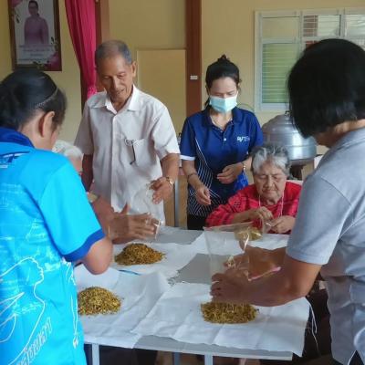 โดยกิจกรรมในวันนี้ เป็นการฝึกอบรมอาชีพ หลักสูตรการเเปรรูปสมุนไพร การผลิตลูกประคบเพื่อการนวดผ่อนคลาย การรับฟังบรรยายในหัวข้อ “การดูเเลสุขภาพผู้สูงอายุด้วยศาสตร์การนวดไทย” การทำความเข้าใจผู้สูงอายุด้วยศาสตร์การเเพทย์เเผนไทย โรคที่พบบ่อยในผู้สูงอายุ การนวดเพื่อการดูเเลสุขภาพผู้สูงอายุเเละหัวข้อ “ลูกประคบสมุนไพรไทย”