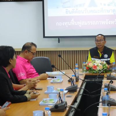 นายเชิดเกียรติ เมธีลักษณ์ ที่ปรึกษานายกองค์การบริหารส่วนจังหวัดสงขลา พร้อมด้วย นายจรัส ชุมปาน ผู้เชี่ยวชาญพิเศษด้านการพัฒนาสังคม, หัวหน้าส่วนราชการองค์การบริหารส่วนจังหวัดสงขลา ร่วมต้อนรับคณะศึกษาดูงาน "กองทุนฟื้นฟูสมรรถภาพจังหวัดพังงา" องค์การบริหารส่วนจังหวัดพังงา ซึ่งนำโดย นายประจวบ แก้วเขียว รองนายกองค์การบริหารส่วนจังหวัดพังงา และ นายสุนทร แทบทับ รองปลัดองค์การบริหารส่วนจังหวัดพังงา