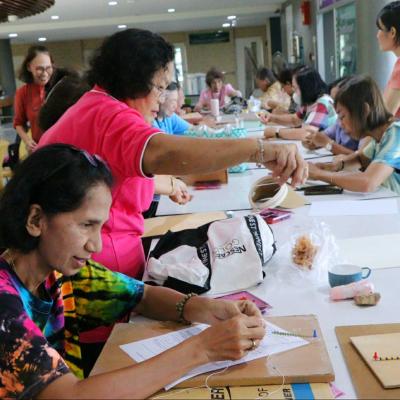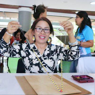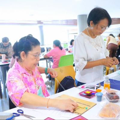 “ กิจกรรมอิ่มเอมในใจงานศิลป์ การฝึกสอนการร้อยลูกปัดโนราห์ ”
