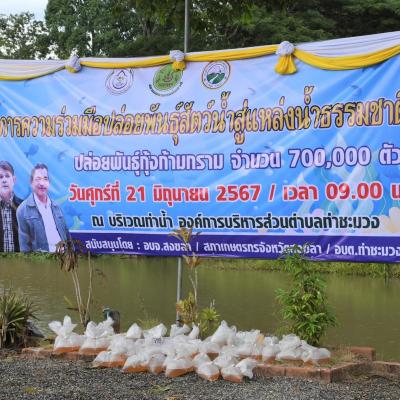 อบจ.สงขลา ร่วมกับ สภาเกษตรกรจังหวัดสงขลาและ อบต.ท่าชะมวง จัดโครงการผลิตพันธุ์สัตว์น้ำเพื่อปล่อยลงสู่แหล่งน้ำธรรมชาติ ซึ่งมีสภาพ แวดล้อม ที่มีความอุดมสมบูรณ์ของระบบนิเวศ เหมาะสมแก่การเจริญเติบโต ของสัตว์น้ำ และเป็นแหล่งประกอบอาชีพของพี่น้องประชาชนในพื้นที่ โดยในกิจกรรมนี้ มีการปล่อยพันธุ์กุ้งก้ามกรามจำนวน 700,000 ตัว เพื่อฟื้นฟูแหล่งน้ำธรรมชาติในคลองชลประทาน ตำบลท่าชะมวง อำเภอรัตภูมิ ให้มีความอุดมสมบูรณ์ เป็นแหล่งอาหารที่สำคัญในการหล่อเลี้ยงประชาชนต่อไป