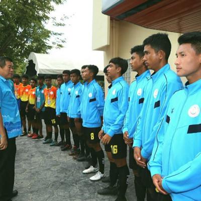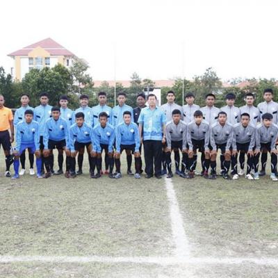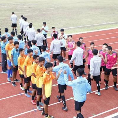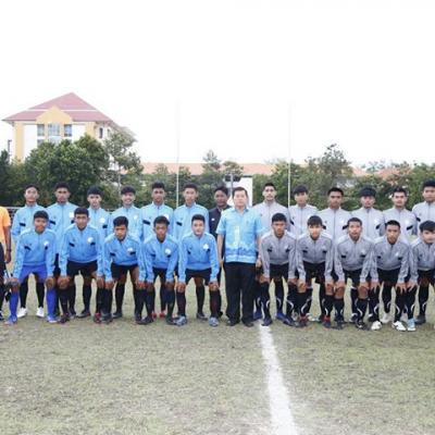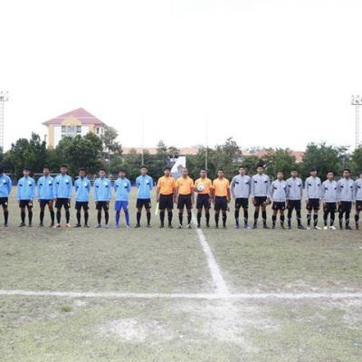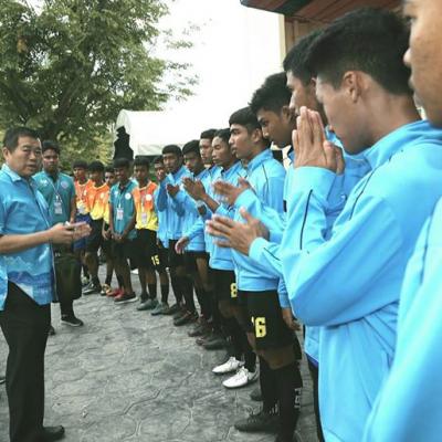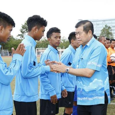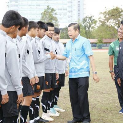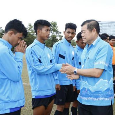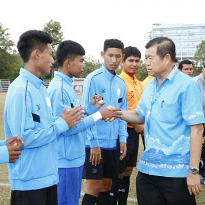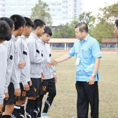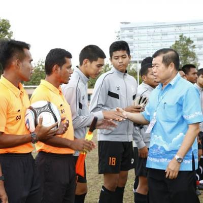 นายก อบจ.สงขลา กล่าวให้กำลังใจ และชมการแข่งขันระหว่างทีมนักเตะจากทีม อบจ.สงขลา กับทีมจากโรงเรียนกีฬาจังหวัดสุราษฏร์ธานี รอบชิงชนะเลิศ