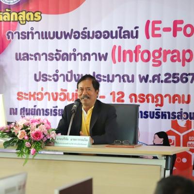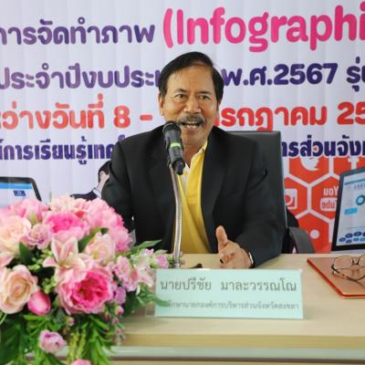 นายปรีชัย มาละวรรณโณ ที่ปรึกษานายกองค์การบริหารส่วนจังหวัดสงขลา เปิดโครงการอบรมให้ความรู้ด้านเทคโนโลยีสารสนเทศ หลักสูตร การทำแบบฟอร์มออนไลน์ (E-Form) และจัดทำภาพ (Infographic) ประจำปีงบประมาณ พ.ศ.2567 รุ่นที่ 3 โดยมี นางมยุรี พานชัย ผู้อำนวยการกองการศึกษา ศาสนาและวัฒนธรรมองค์การบริหารส่วนจังหวัดสงขลา กล่าวรายงาน