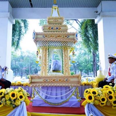 นายไพเจน มากสุวรรณ์ นายกองค์การบริหารส่วนจังหวัดสงขลา อัญเชิญน้ำมนต์ศักดิ์สิทธิ์ห่อด้วยผ้าขาวผูกริบบิ้น ออกจากศาลากลางจังหวัดสงขลา ขึ้นสู่ขบวนรถ เพื่ออัญเชิญมาทำพิธีเสกน้ำพระพุทธมนต์ศักดิ์สิทธิ์ ณ พระอุโบสถวัดชัยมงคล พระอารามหลวง โดยมีข้าราชการชั้นผู้ใหญ่ร่วมในพิธีอัญเชิญน้ำพระพุทธมนต์ศักดิ์สิทธิ์ออกมาจากศาลากลางจังหวัดสงขลา ก่อนที่จะมีพิธีเสกน้ำพระพุทธมนต์ศักดิ์สิทธิ์ ณ อุโบสถวัดชัยมงคล พระอารามหลวง โดยมีนายสมนึก พรหมเขียว ผู้ว่าราชการจังหวัดสงขลาเป็นประธานในพิธี พร้อมด้วยหน่วยงานภาครัฐ ข้าราชการ องค์กรปกครองส่วนท้องถิ่น จิตอาสาพระราชทาน และประชาชนทุกหมู่เหล่าที่พร้อมใจกันใส่เสื้อเหลือง ร่วมในพิธีเสกน้ำพระพุทธมนต์ศักดิ์สิทธิ์ เพื่อความเป็นสิริมงคล และร่วมแสดงออกถึงความจงรักภักดัต่อสถาบันพระมหากษัตริย์ อันเป็นศูนย์รวมของคนไทยทั้งประเทศ เนื่องในโอกาสปีมหามงคลเฉลิมพระชนมพรรษา พระบาทสมเด็จพระเจ้าอยู่หัวครบ 6 รอบ 28 กรกฎาคม 2567