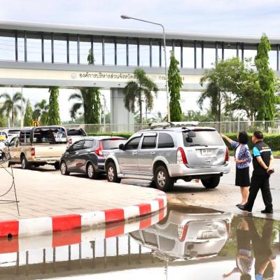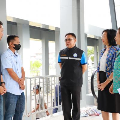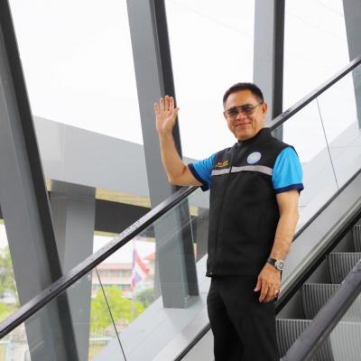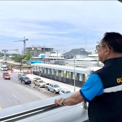 นายกอบจ.สงขลา ตรวจสอบความคืบหน้าก่อสร้างสะพานลอยข้ามถนน โดยใช้บันไดเลื่อนด้วยระบบไฟฟ้าหน้าโรงพยาบาลสงขลา