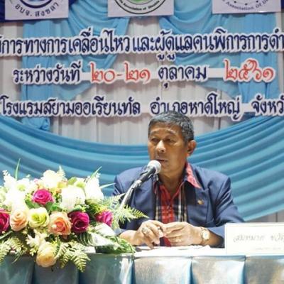 20 ตุลาคม 2561 เวลา 13.30 น. นายสมหมาย. ขวัญทองยิ้ม รองนายก อบจ.สงขลา เป็นประธานเปิดโครงการอบรมคนพิการทางการเคลื่อนไหวและผู้ดูแลคนพิการการดำรงชีวิตอย่างมีความสุข ซึ่งจัดขึ้นระหว่างวันที่ 20-21 ตุลาคม 2561 ณ โรงแรมสยามออเรียนทัล อ.หาดใหญ จ.สงขลา