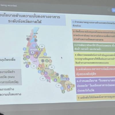 นายธัชธาวิน สะรุโณ ผู้เชี่ยวชาญพิเศษด้านการเกษตร อบจ. สงขลา เข้าร่วมการประชุมภาคีเครือข่ายบูรณาการขับเคลื่อนงานระบบอาหารในจังหวัดสงขลา(เตรียมเวที โชว์ แชร์ เชื่อม แผนงานอาหาร) โดยการประชุมมีการชี้แจงเป้าหมายและวัตถุประสงค์การจัดประชุมกรอบการวิเคราะห์ระบบอาหาร ตลอดห่วงโซ่ โดย ดร.เพ็ญ สุขมาก ผู้อำนวยการสถาบันนโยบายสาธารณะ มหาวิทยาลัยสงขลานครินทร์ การขับเคลื่อนงานระบบอาหารเพื่อสุขภาวะตลอดห่วงโซ่ โดย ผู้แทนจากสำนักงานกองทุนสนับสนุนการสร้างเสริมสุขภาพ (สสส.) Mapping ต้นทุน ศักยภาพการเคลื่อนงานระบบอาหาร ต้นน้ำ กลางน้ำ ปลายน้ำ เพื่อบูรณาการทำงานร่วมกัน และ ออกแบบ กลไก การขับเคลื่อนงานระบบอาหารจังหวัดสงขลา โดย ดร.เพ็ญ สุขมาก ผู้อำนวยการสถาบันนโยบายสาธารณะ มหาวิทยาลัยสงขลานครินทร์ แบ่งกลุ่มจัดทำข้อมูลสถานการณ์อาหารในจังหวัดสงขลา