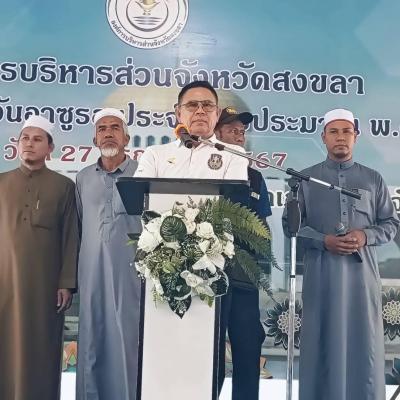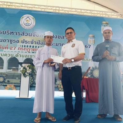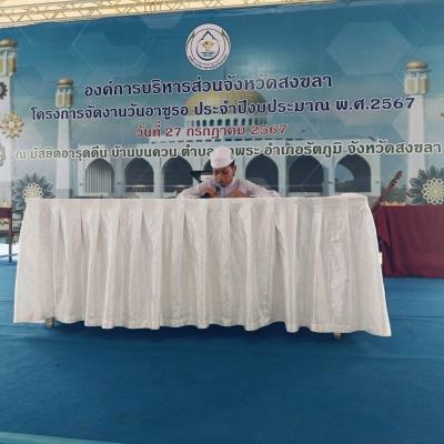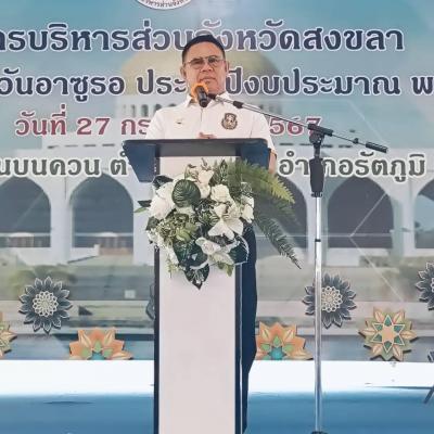 นายไพเจน มากสุวรรณ์ นายกองค์การบริหารส่วนจังหวัดสงขลาเป็นประธานเปิดโครงการจัดงานวันอาซูรอ ประจำปี 2567 โดยมี นายพิษณุ หลีหีม สมาชิกสภาองค์การบริหารส่วนจังหวัดสงขลา เขต2 อำเภอรัตภูมิ ผู้นำชุมชนอีหม่ามประจำมัสยิด พี่น้องชาวบ้าน ข้าราชการ เจ้าหน้าที่กองการศึกษา ศาสนาและวัฒนธรรมองค์การบริหารส่วนจังหวัดสงขลาเข้าร่วม ณ มัสยิดซีอารุดดีน (บ้านบนควน)ตำบลเขาพระ อำเภอรัตภูมิ จังหวัดสงขลา โดยมีวัตถุประสงค์เพื่อเป็นการขับเคลื่อนกิจกรรมทางสังคมที่สำคัญต่อการอยู่ร่วมกันเป็นกิจกรรมด้านการอนุรักษ์วัฒนธรรมประเพณีท้องถิ่นประเพณีสำคัญทางศาสนาอันเป็นศูนย์รวมของคนทุกระดับในสังคม