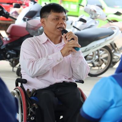 นายวินัย ขวัญปาน นายกสมาคมคนพิการจังหวัดสงขลา //กล่าวรายงาน