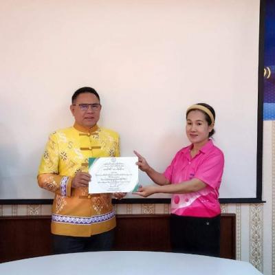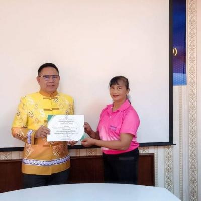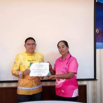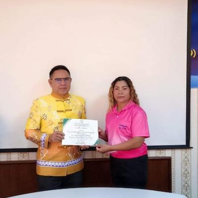 นายกไพเจน ให้เกียรติมอบประกาศนียบัตรให้แก่ผู้ที่ผ่านการอบรมหลักสูตร ผู้ดูแลผู้สูงอายุที่มีภาวะพึ่งพิง (หลักสูตร 120 ชั่วโมง)