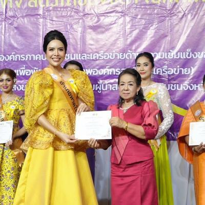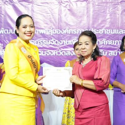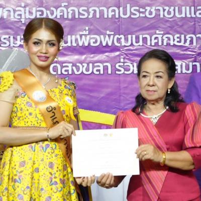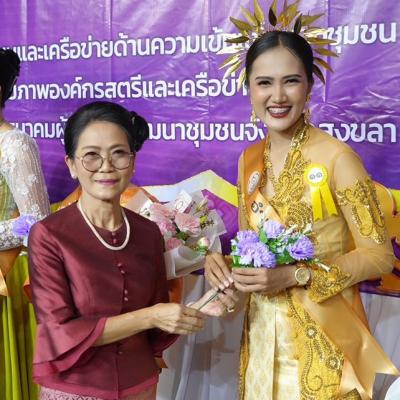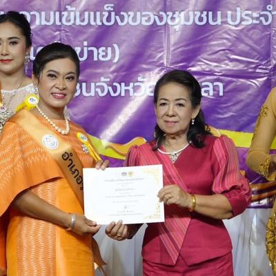 โดยมี นางพรเอื้อ เชื้อเเหลม ที่ปรึกษานายกองค์การบริหารส่วนจังหวัดสงขลา ในฐานะนายกสมาคมสตรีพัฒนาชุมชนจังหวัดสงขลา มอบประกาศนียบัตรให้กับตัวเเทนสตรีไทยทั้ง 16 อำเภอสำหรับการเข้าร่วมประกวดฯ