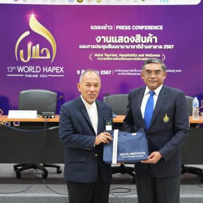 วันนี้ (9 ส.ค. 67) ณ ห้องประชุม 1402 ชั้น 14 อาคาร 1 ศูนย์ทรัพยากรการเรียนรู้ (LRC) มหาวิทยาลัยสงขลานครินทร์ วิทยาเขตหาดใหญ่ นายอับดลรอหมาน กาเหย็ม รองนายกองค์การบริหารส่วนจังหวัดสงขลา ผู้แทนเลขาธิการคณะกรรมการกลางอิสลามแห่งประเทศไทย ร่วมกล่าวสนับสนุนการจัดงานในการแถลงข่าวการจัดงานแสดงสินค้าและการประชุมสัมมนานานาชาติด้านฮาลาล 2567 (World HAPEX 2024) ซึ่งกำหนดจัดขึ้นระหว่างวันที่ 29 สิงหาคม - 1 กันยายน 2567 ณ ห้อง ICC Hatyai ศูนย์ประชุมนานาชาติฉลองสิริราชสมบัติ ครบ 60 ปี โดยมีผู้ช่วยศาสตราจารย์ ดร.นิวัติ แก้วประดับ อธิการบดีมหาวิทยาลัยสงขลานครินทร์ กล่าวต้อนรับ พร้อมด้วยนาวาเอก จักรพงษ์ อภิมหาธรรม ผู้อำนวยการกองส่งเสริมและสนับสนุนงานพัฒนาฝ่ายพลเรือน ผู้แทนเลขาธิการศูนย์อำนวยการบริหารจังหวัดชายแดนภาคใต้ , อาจารย์อับดุลหาลืม ล่าเต๊ะ เลขานุการคณะกรรมการอิสลามประจำจังหวัดสงขลา ผู้แทนประธานคณะกรรมการอิสลามประจำจังหวัดสงขลา และผู้ช่วยศาสตราจารย์ ดร.อัสมัน แตอาลี ผู้อำนวยการสถาบันฮาลาล ร่วมในการแถลงข่าว