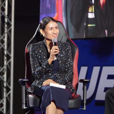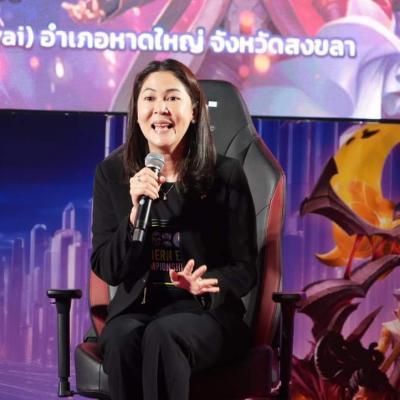 นางสาวจิตจัณ สาระวิโรจน์ ประธานชมรมกีฬาอีสปอร์ตจังหวัดสงขลา กล่าววัตถุประสงค์ของการจัดงาน พร้อมด้วย