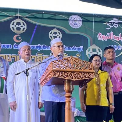 นายไพเจน มากสุวรรณ์ นายกองค์การบริหารส่วนจังหวัดสงขลา มอบ นายอับดลรอหมาน กาเหย็ม รองนายกองค์การบริหารส่วนจังหวัดสงขลา เป็นประธานในพิธีเปิดโครงการจัดงานเมาลิดสัมพันธ์ ประจำปีงบประมาณ พ.ศ. 2567 ณ ฝายส่งน้ำและบำรุงรักษาที่ 3 ตำบลท่าชะมวง อำเภอรัตภูมิ จังหวัดสงขลา โดยมีนายพิษณุ หลีหีม สมาชิกสภาองค์การบริหารส่วนจังหวัดสงขลา เขต2อำเภอรัตภูมิ กล่าวรายงาน นางสาววิไลลักษณ์ เรืองผล นายอำเภอรัตภูมิ ปลัดอำเภอรัตภูมิ ท้องถิ่นอำเภอรัตภูมิ รองนายกองค์การบริหารส่วนตำบลท่าชะมวง ชมรมผู้บริหารมัสยิดอำเภอรัตภูมิ ประธานชมรมอิหม่ามท่าชะมวง คณะกรรมการจัดกิจกรรม ข้าราชการ เจ้าหน้าที่กองการศึกษา ศาสนาและวัฒนธรรมองค์การบริหารส่วนจังหวัดสงขลา เข้าร่วม โดยมีวัตถุประสงค์เพื่อสืบสานเจตนารมณ์แห่งการเผยแพร่จริยวัตรอันทรงคุณค่าของท่านศาสดามูฮัมมัด เพื่อให้คนในสังคมเป็นคนดี มีคุณธรรม รู้รักสามัคคี และสร้างจิตสำนึกเป็นแนวทางในการดำเนินชีวิตเป็บแบบอย่างอันงดงามสืบไป