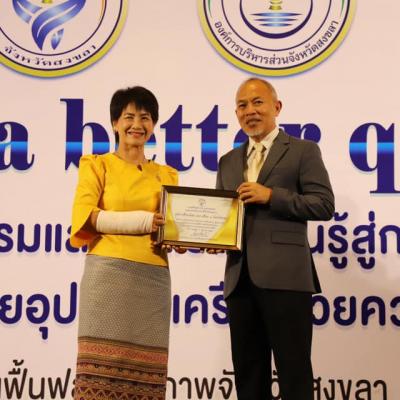 ด้วยในปี พ.ศ.2558 องค์การบริหารส่วนจังหวัดสงขลา สมทบงบประมาณกับสำนักงานหลักประกันสุขภาพแห่งชาติ จัดตั้งกองทุนฟื้นฟูสมรรถภาพจังหวัดสงขลา เพื่อเพิ่มการเข้าถึงบริการฟื้นฟูสมรรถภาพทางการแพทย์ อุปกรณ์เครื่องช่วยความพิการ ตลอดจนปรับสภาพแวดล้อมและที่อยู่อาศัยให้เอื้อกับสภาพหรือข้อจำกัดด้านร่างกายให้กับคนพิการ ผู้สูงอายุ ผู้ป่วยในระยะกึ่งเฉียบพลัน และผู้ที่มีภาวะพึ่งพิง ให้สามารถกลับมาใช้ชีวิตได้ใกล้เคียงปกติมากที่สุด ตลอดระยะเวลา 10 ปีที่ผ่านมาก่อเกิดนวัตกรรมด้านการเสริมสร้างความร่วมมือภาคีเครือข่ายภาครัฐ ภาคเอกชน และภาคประชาชนอย่างเป็นรูปธรรมในพื้นที่หลากหลายโครงการ อาทิ นวัตกรรมกรรมศูนย์ซ่อมสร้างสุขชุมชน , นวัตกรรมศูนย์สร้างสุขชุมชน , นวัตกรรมบ้านสร้างสุขชุมชน , นวัตกรรมที่นอนลมจากถุงนำยาล้างไต และนวัตกรรมน้องอ้อมปันสุข ฯลฯ