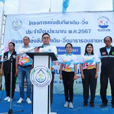 โครงการแข่งขันกีฬาเดิน-วิ่ง มาราธอนชายหาด ประจำปีงบประมาณ พ.ศ.2567 พร้อมด้วย สมาชิกสภาผู้แทนราษฎร สมาชิกสภา อบจ.สงขลา นายก อบต. กำนัน ผู้ใหญ่บ้าน คณะกรรมการจัดการแข่งขัน กรรมการตัดสินนักกีฬา นักกีฬา