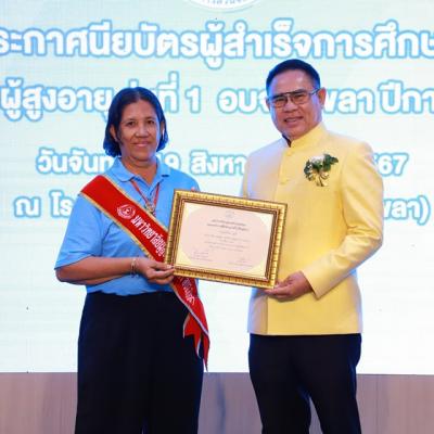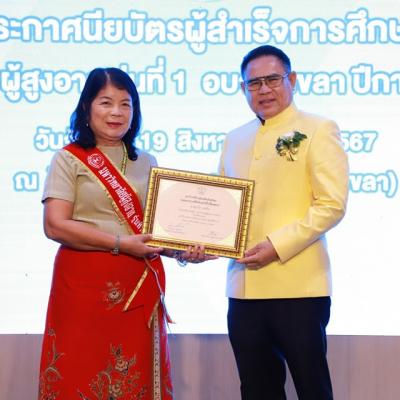 นายกไพเจน มอบประกาศนียบัตรให้ผู้สำเร็จการศึกษา ม.ผู้สูงอายุ อบจ.สงขลา (มหาวิทยาลัยแห่งความสุข) รุ่นที่ 1