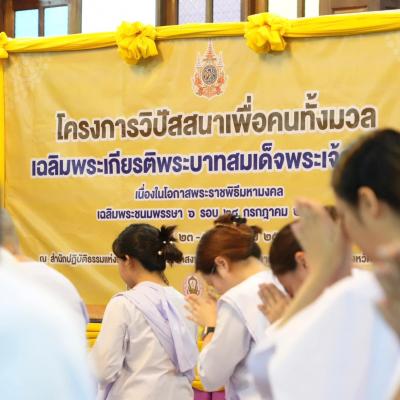 รัฐบาลมอบหมายให้กระทรวงวัฒนธรรมโดยกรมการศาสนาร่วมกับภาคคณะสงฆ์ หน่วยงานภาครัฐ ภาคเอกชน เครือข่ายทางองค์การทางพระพุทธศาสนา ได้ดำเนินการจัดโครงการวิปัสสนาเพื่อคนทั้งมวล เฉลิมพระเกียรติพระบาทสมเด็จพระเจ้าอยู่หัว เนื่องในโอกาสพระราชพิธีมหามงคลเฉลิมพระชนมพรรษา 6 รอบ 28 กรกฎาคม 2567 ทุกจังหวัด เพื่อถวายเป็นพระราชกุศลและเฉลิมพระเกียรติพระบาทสมเด็จพระเจ้าอยู่หัวฯ ด้วยการสนับสนุนส่งเสริมให้วัด ศาสนสถาน สถานศึกษาและเครือข่ายต่างๆ นำหลักการปฎิบัติสมาธิ วิปัสสนาไปช่วยพัฒนาสมรรถนะทางจิตให้กับเด็ก เยาวชน และประชาชนทั่วไป เพื่อให้จิตใจสงบ มั่นคง มีสติ และสามารถนำไปประยุกต์ใช้ในการดำเนินชีวิตประจำวันได้อย่างต่อเนื่อง