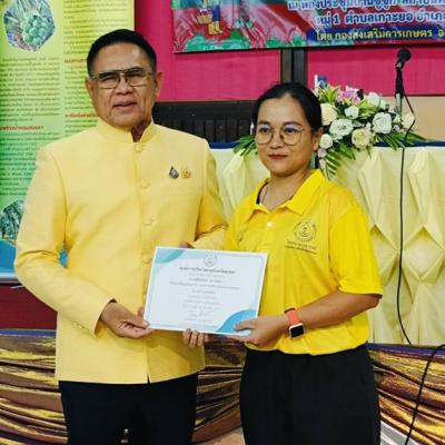การขายปัจจุบัน เราอย่าไปกังวล ในปีหน้าผมจะให้ทำกลุ่มขายออนไลน์ ปีละ 4-5 รุ่นเกี่ยวกับการขายออนไลน์ เพราะเดี๋ยวนี้ระบบขนส่งมีมากทั้งของเอกชน และไปรษณีย์ที่ออกมาให้บริการขนส่งแข่งกับเอกชน แต่ทั้งนี้การส่งสินค้า ต้องอยู่ที่ความซื่อสัตย์ที่เราต้องมีต่อผู้บริโภคเป็นสำคัญ อาชีพเกษตรถือเป็นอาชีพที่สำคัญ เพราะถ้าเราทำให้ดีก็จะเป็นอาชีพที่มั่นคงและยั่งยืน และร่ำรวย แต่เราต้องใช้เทคโนโลยีเข้ามาช่วย เพื่อให้สินค้ามีประสิทธิภาพ มีคุณภาพ และจะช่วยลดต้นทุน ทั้งในเรื่องของการวัดค่าของดิน เกี่ยวกับความเป็นกรด หรือด่าง ของน้ำ ความเข้มข้นของปุ๋ยก็เช่นกัน เหล่านี้ต้องใช้วิชาการเข้ามาช่วย ก็จะทำให้การผลิตการเกษตรเป็นผลผลิตที่มีคุณภาพ และประสบความสำเร็จในอาชีพการทำเกษตร ซึ่งต่อไปก็จะมีหลักสูตรเหล่านี้มาให้กับกลุ่มอาสาเกษตรที่เรามี นอกจากขนิดพืชที่ปลูกจากคันนา ก็มีพืชขนิดอื่นที่เป็นทางเลือกหนึ่งก็คือปลูกมะพร้าวน้ำหอม เพราะไม่ใช้น้ำมาก และไม่เหนื่อยเหมือนทำนา เพียงขุดร่องปลูกครั้งเดียวและดูแลก็กินไปได้ 20-30 ปี ผลผลิตก็ดี และถ้าเราตั้งเป็นกลุ่มมะพร้าวน้ำหอม ก็จะสามารถกำหนดราคาได้ แต่ยังเขื่อว่ามะพร้าวยังเป็นทางเลือกหนึ่งที่จะทำให้เกษตรกรมีความเป็นอยู่ที่ดีขึ้น และยั่งยืน