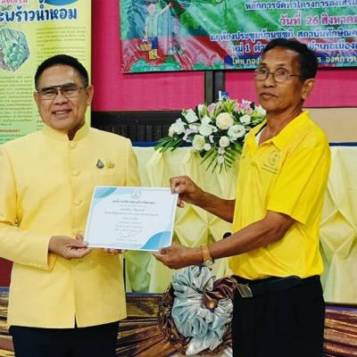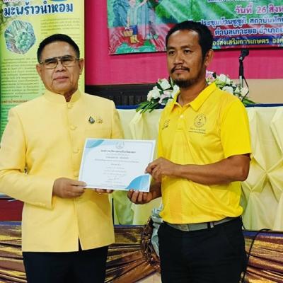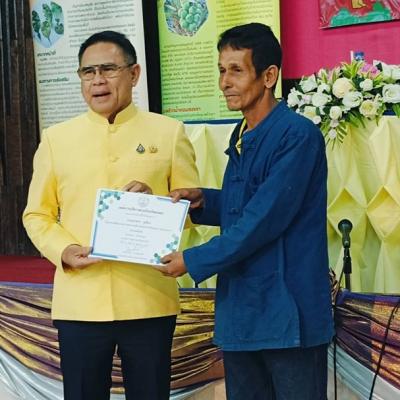 นายไพเจน มากสุวรรณ์ นายกองค์การบริหารส่วนจังหวัดสงขลา ประธานในพิธีปิดการฝึกอบรมกิจกรรมที่ 1 กิจกรรมการพัฒนาอาสาสมัครเกษตร อบจ.(อสก. อบจ.) หลักสูตรที่ 2 ตามโครงการพัฒนาเครือข่ายด้านการเกษตร ปีงบประมาณ 2567 โดยมี นางสุกัญญา มากสุวรรณ์ นายธัชธาวินท์ สะรุโณ ผู้เชี่ยวชาญพิเศษด้านการเกษตร อบจ.สงขลา นางสุภาณี วรจินต์ ผู้อำนวยการกองยุทธศาสตร์และงบประมาณ อบจ.สงขลา ประธานอาสาสมัครเกษตร อบจ.สงขลาในพื้นที่ 16 อำเภอของจังหวัดสงขลา และอาสาสมัครเกษตรกรที่เข้ารับการฝึกอบรม ร่วมในพิธีปิด พร้อมกันนี้ นายไพเจน มากสุวรรณ์ นายกองค์การบริหารส่วนจังหวัดสงขลา ได้มอบประกาศเกียรติบัตรให้แก่อาสาสมัครเกษตรกรที่เข้ารับการฝึกอบรม และมอบใบแต่งตั้งให้แก่ประธานหมอพืชเกษตรทั้ง 16 อำเภอของจังหวัดสงขลา ในโครงการดังกล่าว ณ ห้องประชุมบ้านซูซูกิ สถาบันทักษิณคดีศึกษา มหาวิทยาลัยทักษิณ ตำบลเกาะยอ อำเภอเมือง จังหวัดสงขลา