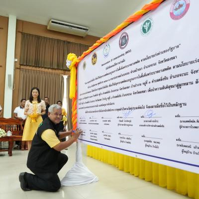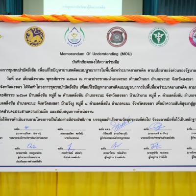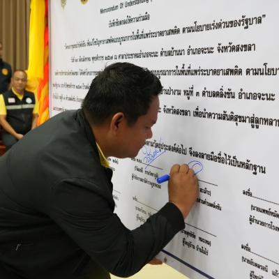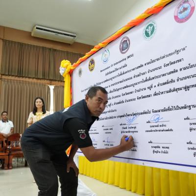 อบจ.สงขลา ผนึกกำลังภาคีเครือข่าย ลงนาม MOU “โครงการชุมชนบำบัดยั่งยืน เพื่อแก้ไขปัญหายาเสพติดแบบบูรณาการในพื้นที่แพร่ระบาดยาเสพติด ตามนโนบายเร่งด่วนของรัฐบาล" มุ่งหวังนำความสันติสุขมาสู่ลูกหลาน สังคม และประเทศชาติ