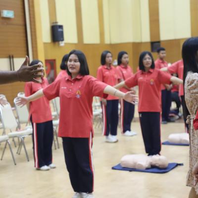 คณะศึกษาดูงานนำโดย นางสาวธัญวรัตม์ นาคปก และนางสาวสิริพิชญ์ พรหมสังคหะ นำนักเรียนกลุ่ม TPAT 1 กสพท (ความถนัดแพทย์) ชั้นมัธยมศึกษาปีที่ 6 จำนวน 78 คน เข้าศึกษาดูงานการแพทย์ฉุกเฉิน และฝึกอบรมการทำ CPR และการใช้เครื่อง AED ในการช่วยชีวิตผู้ป่วยในกรณีหัวใจหยุดเต้น รวมถึงการเยี่ยมชม ศูนย์ควบคุมระบบกล้องโทรทัศน์วงจรปิด ขององค์การบริหารส่วนจังหวัดสงขลา