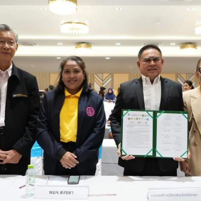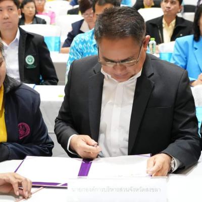 อบจ.สงขลา ร่วมกับ สำนักงานพัฒนาสังคมและความมั่นคงของมนุษย์จังหวัดสงขลา สมัชชาสุขภาพจังหวัดสงขลา มูลนิธิชุมชนสงขลา และภาคีเครือข่าย 26 องค์กร ลงนาม MOU ความร่วมมือ “ความสุขเริ่มที่บ้าน : เติมสุขโมเดล”